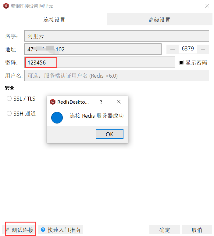 在 RDM 中进行远程连接时,请确保 Redis 配置文件已正确设置,并且服务已重启。